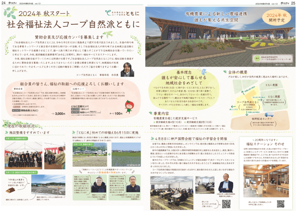 「社会福祉法人コープ自然派ともに」は、令和5年5月10日に徳島県より認可を受け設立されました。