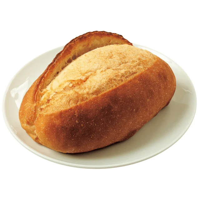 ②フランス・オ・レの上部を切り落とし、1cmくらい縁を残して包丁で切り込みを入れ、スプーンなどで2~3cmの深さに中身をすくい取る。