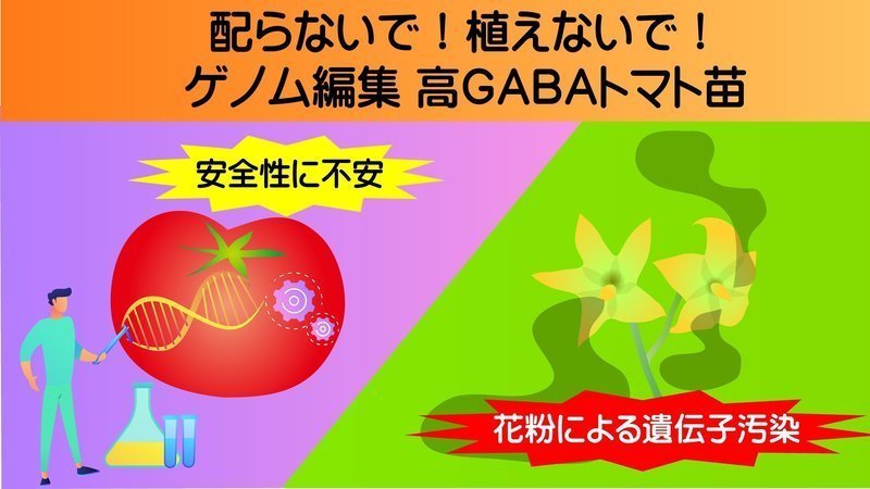 サナテックシード社が消費者に無償配布しようとしているゲノム編集技術による高GABAトマトは安全性の確認もほとんどされておらず、消費者に食するようにさせるのは人体実験に等しいことです。