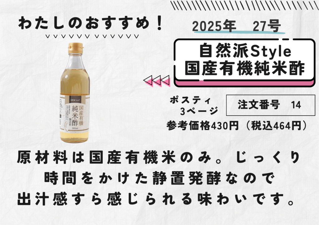 #わたしのおすすめ #自然派Style国産有機純米酢 #国産有機米 #静置発酵 #出汁感