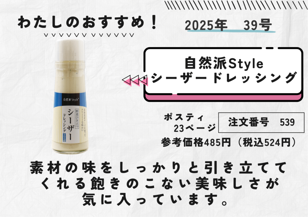 #わたしのおすすめ #自然派Styleシーザードレッシング #素材の味 #飽きのこない美味しさ